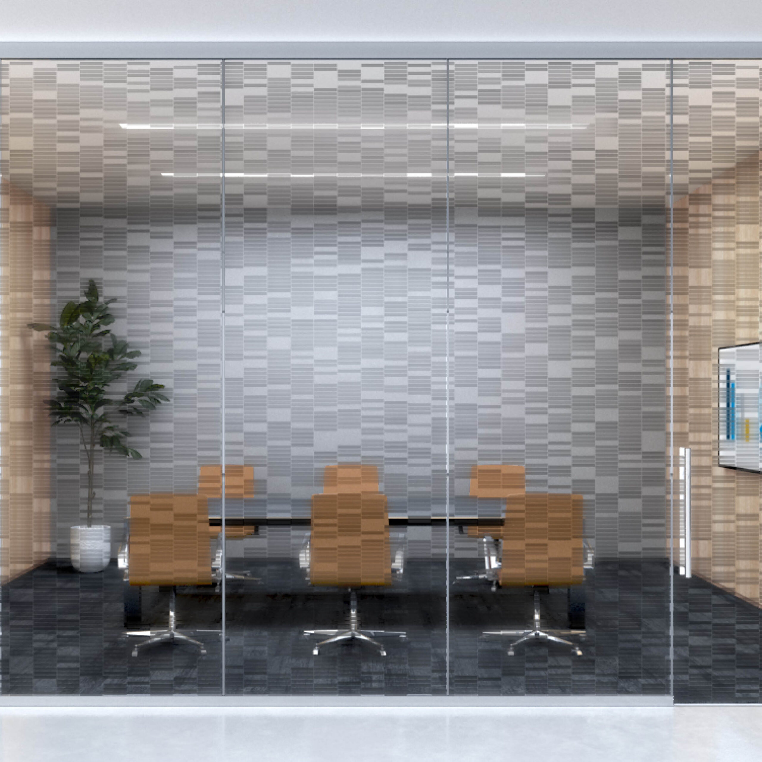 Coyle & Company strongly recommends that samples of Connex patterns be viewed in the intended installation location prior to ordering and installing. Many variables affect visibility and should be considered when evaluating film options, such as: lighting conditions, glass color and thickness, colors and textures of surrounding fixtures and finishes, mounting heights and viewing angles, and placement of the film on the glass.
